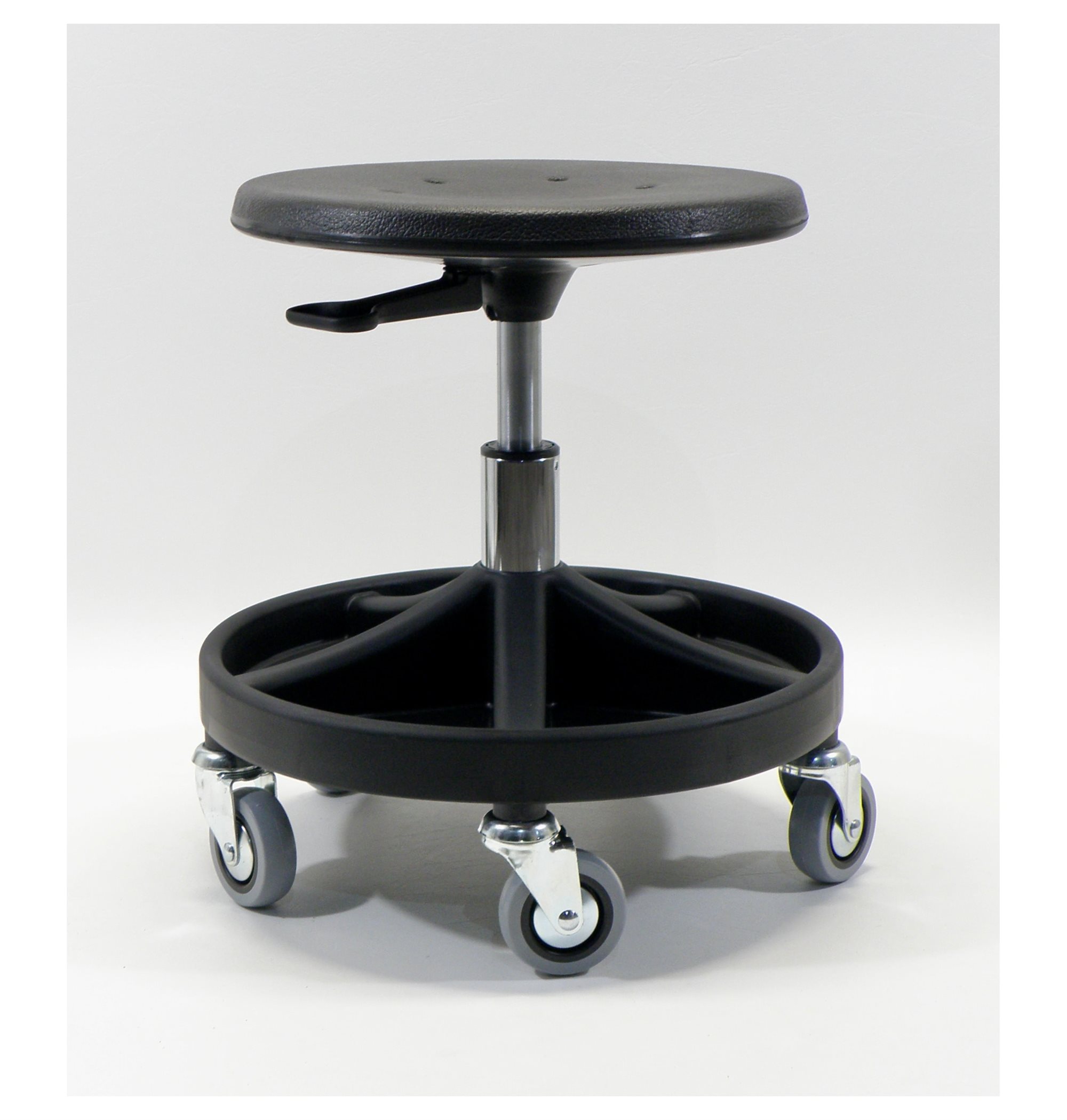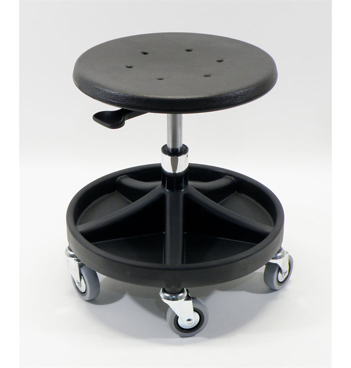En smart og robust taburet med bekvemt sæde i PU-skum. Velegnet til dig , der ellers måtte sidde på hug eller stå foroverbøjet. Fodkryds i nylon med dobbelt forkant, fem rum til skruer, bolte m.m.