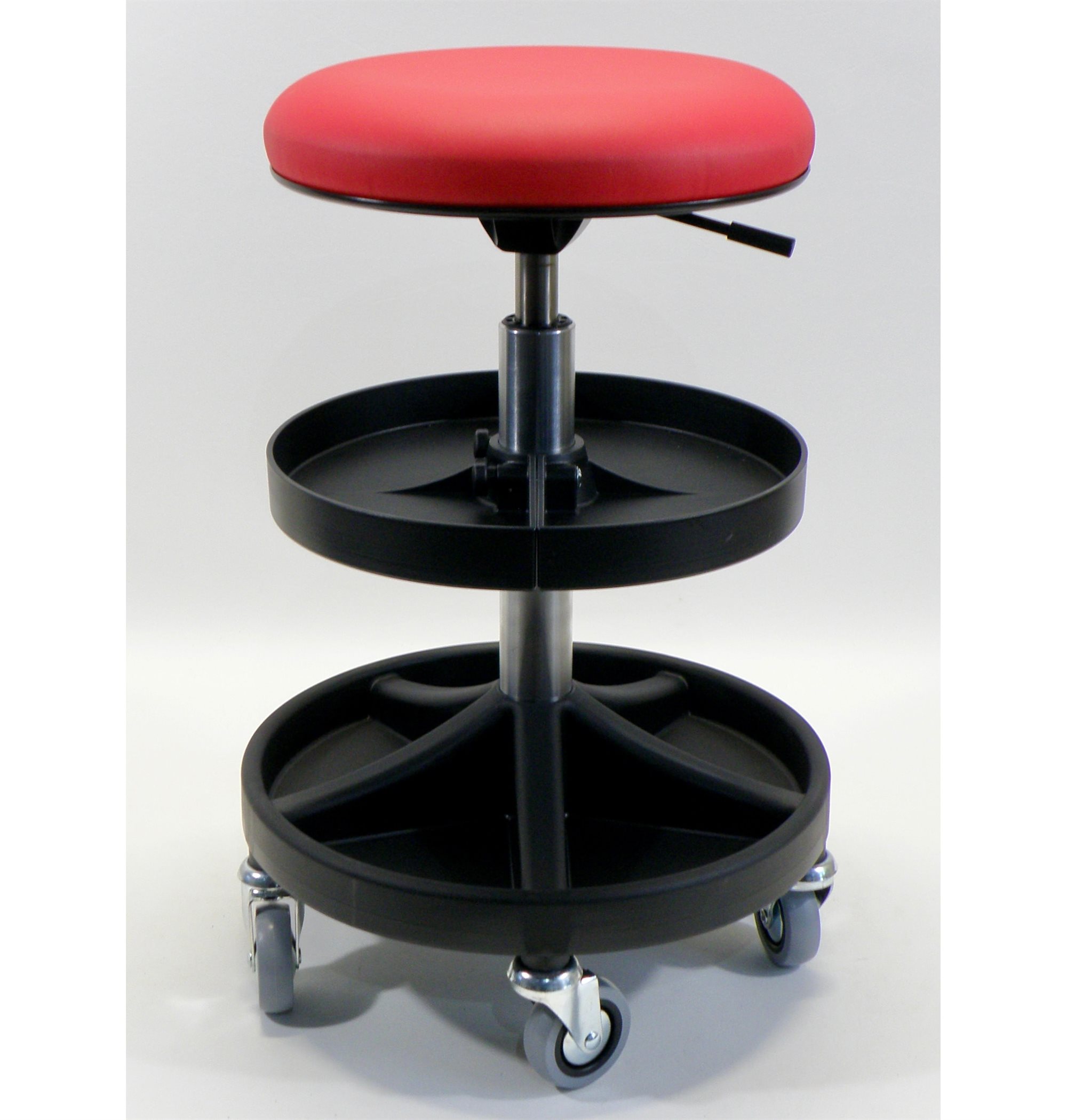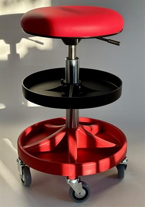 All-Round montørstol med ekstra bakke, rød kunstlæder.