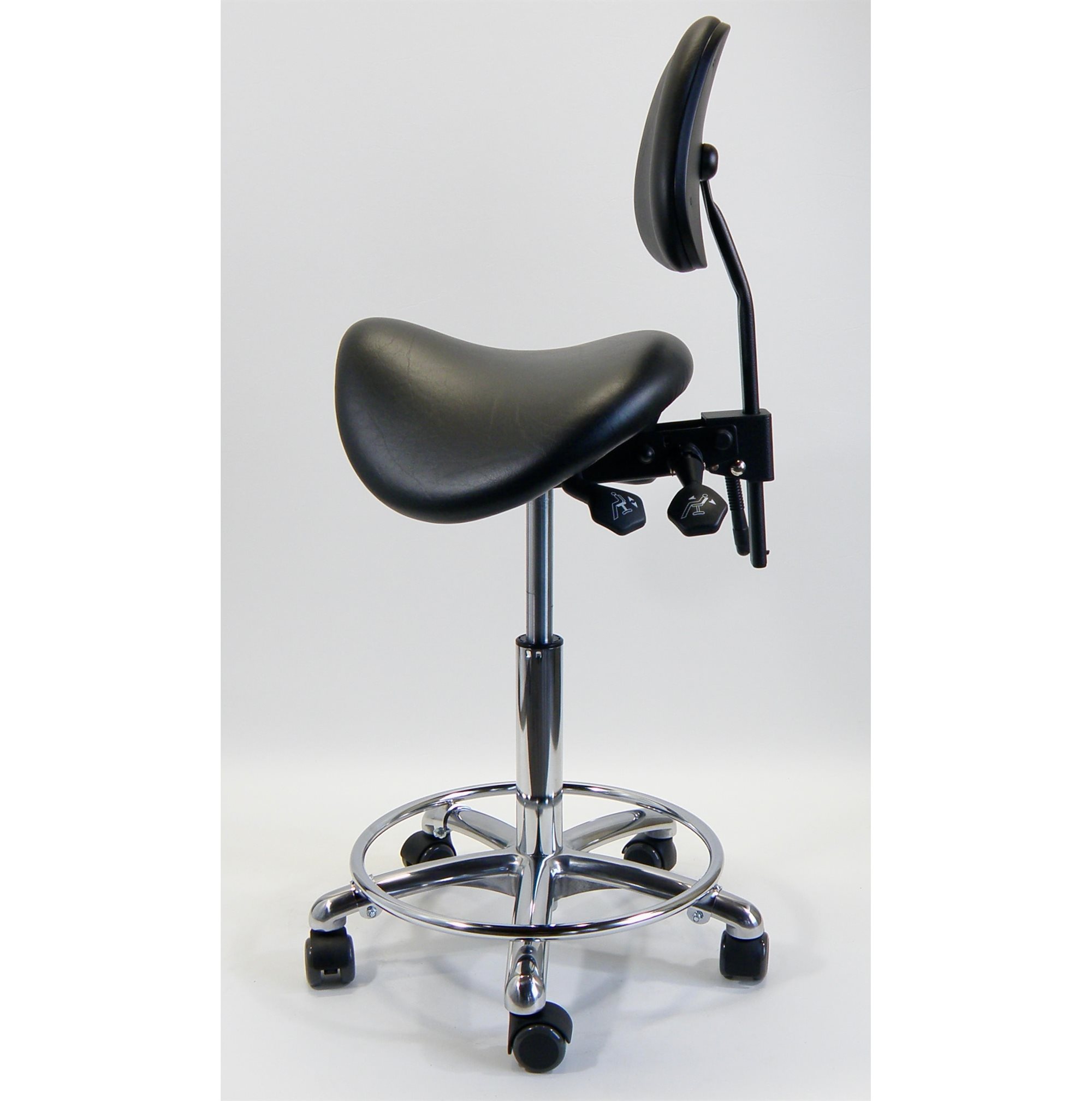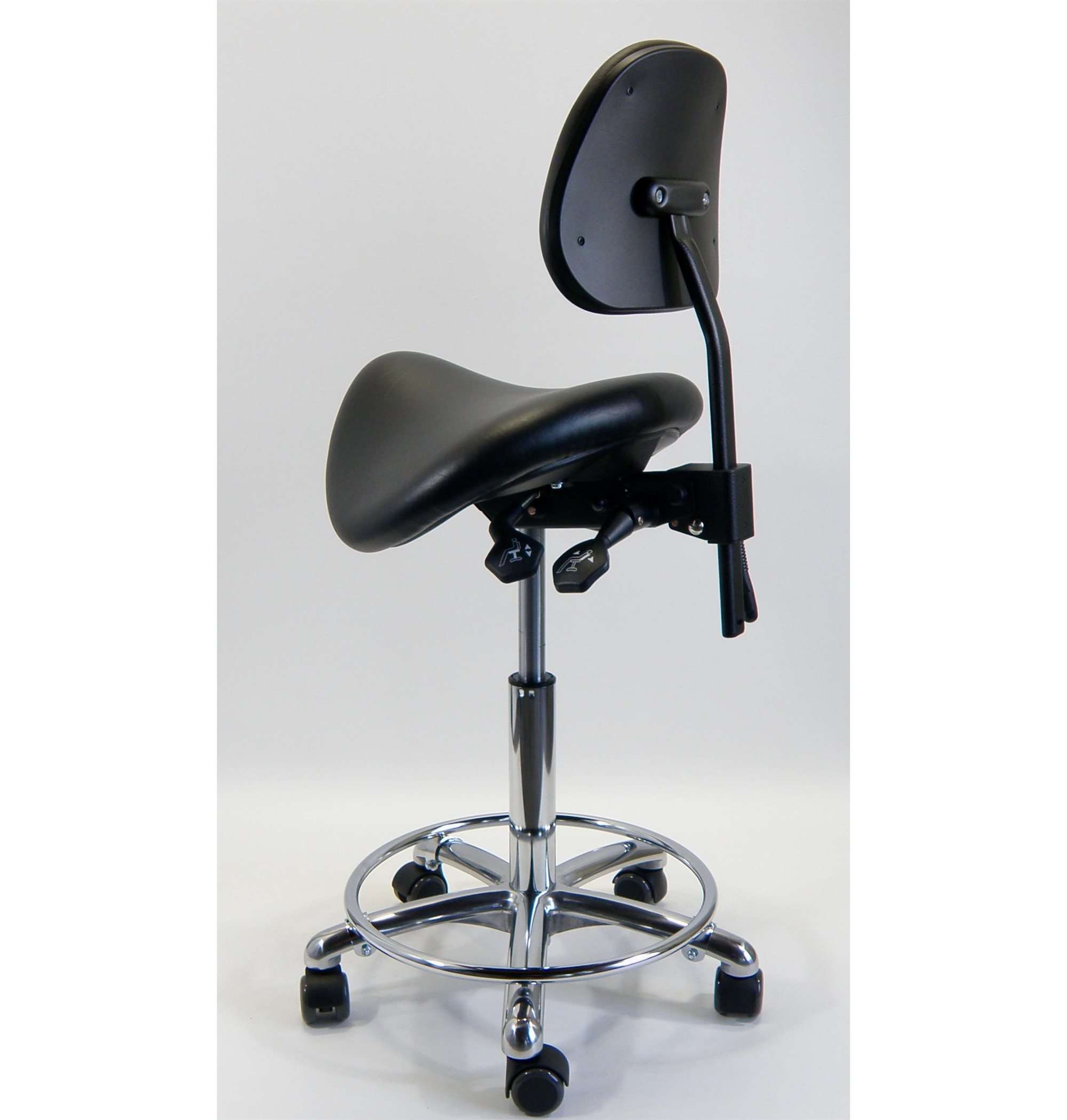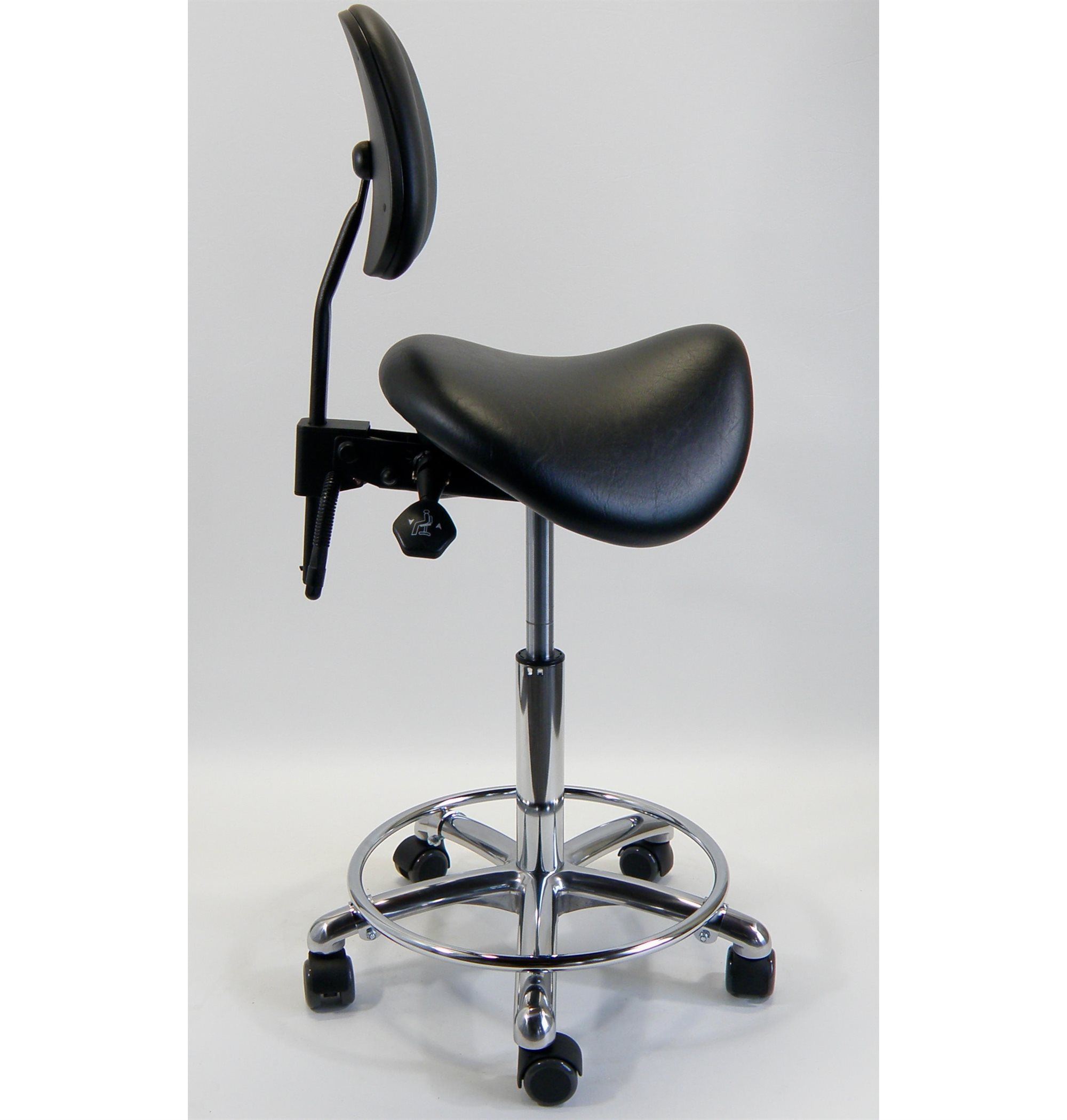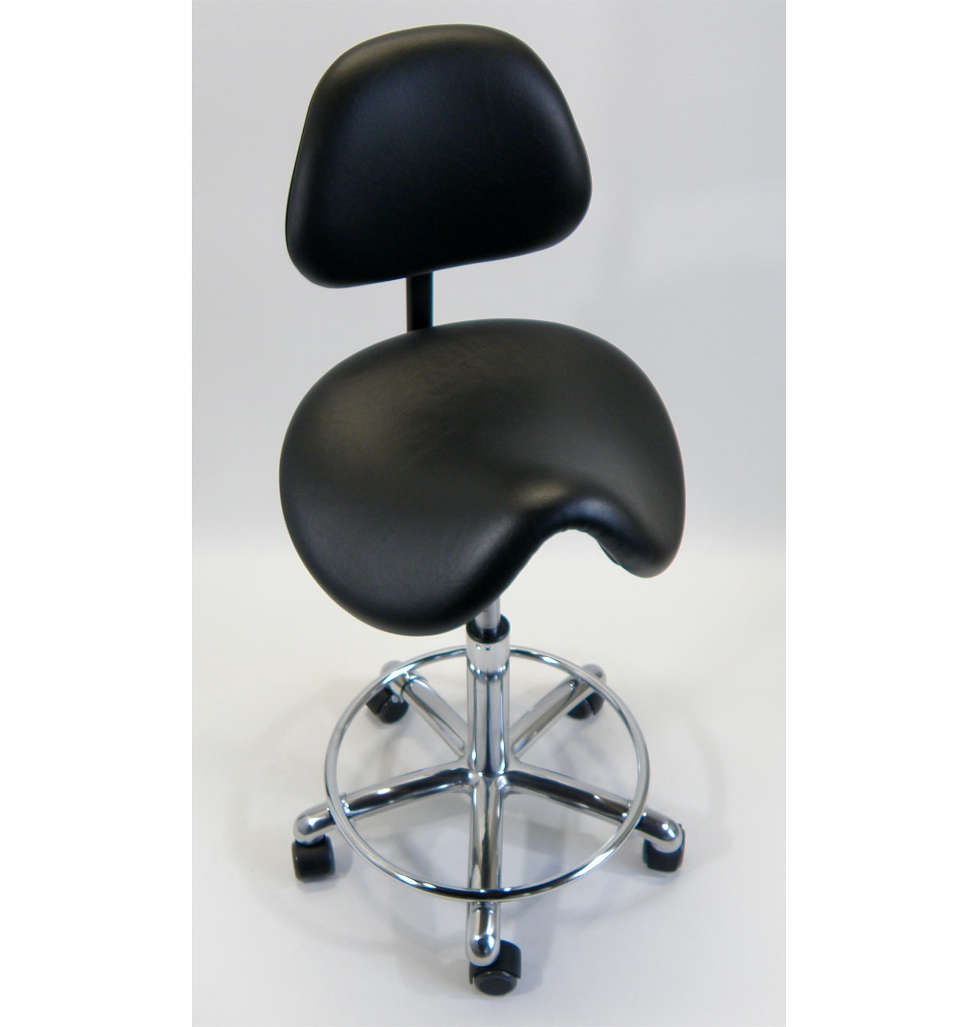 Tarok comfort sadelstol med ryglæn, fod-ring, kunstlæder sort. 3303